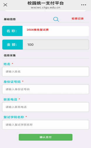 9月22日 | 网上缴费(见附件1) | 研究生复试费缴费流程 | 复试费100元/人。所有确认复试通知的推免生都必须缴纳复试费,未缴费者不予复试,缴费后未参加复试者不予退费。确认复试通知的推免生请按“研究生复试费缴费流程”缴费 |